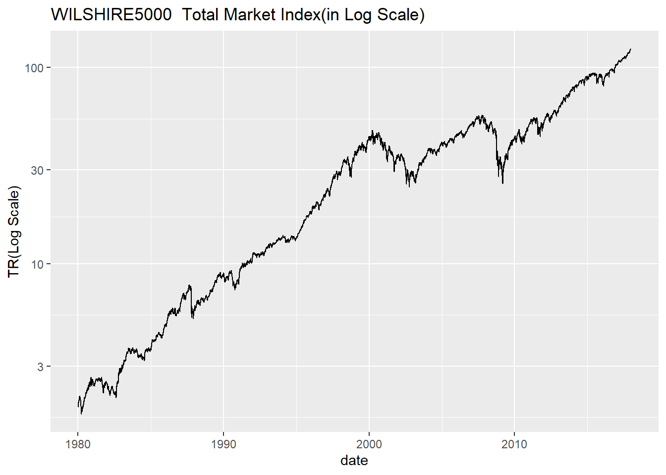 We are going to work with WILSHIRE5000 a portfolio of stock / market indice which contains every stock that trades in equity market. WILSHIRE5000 is :