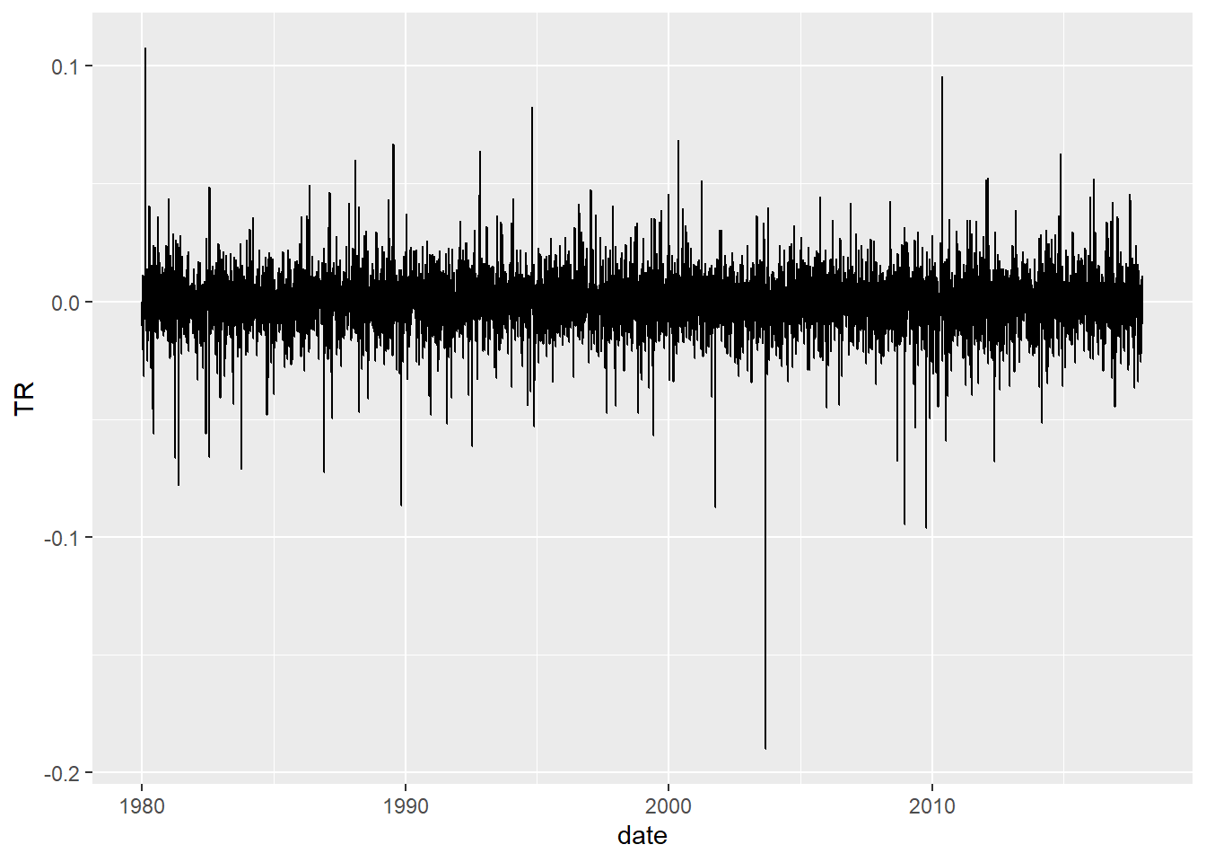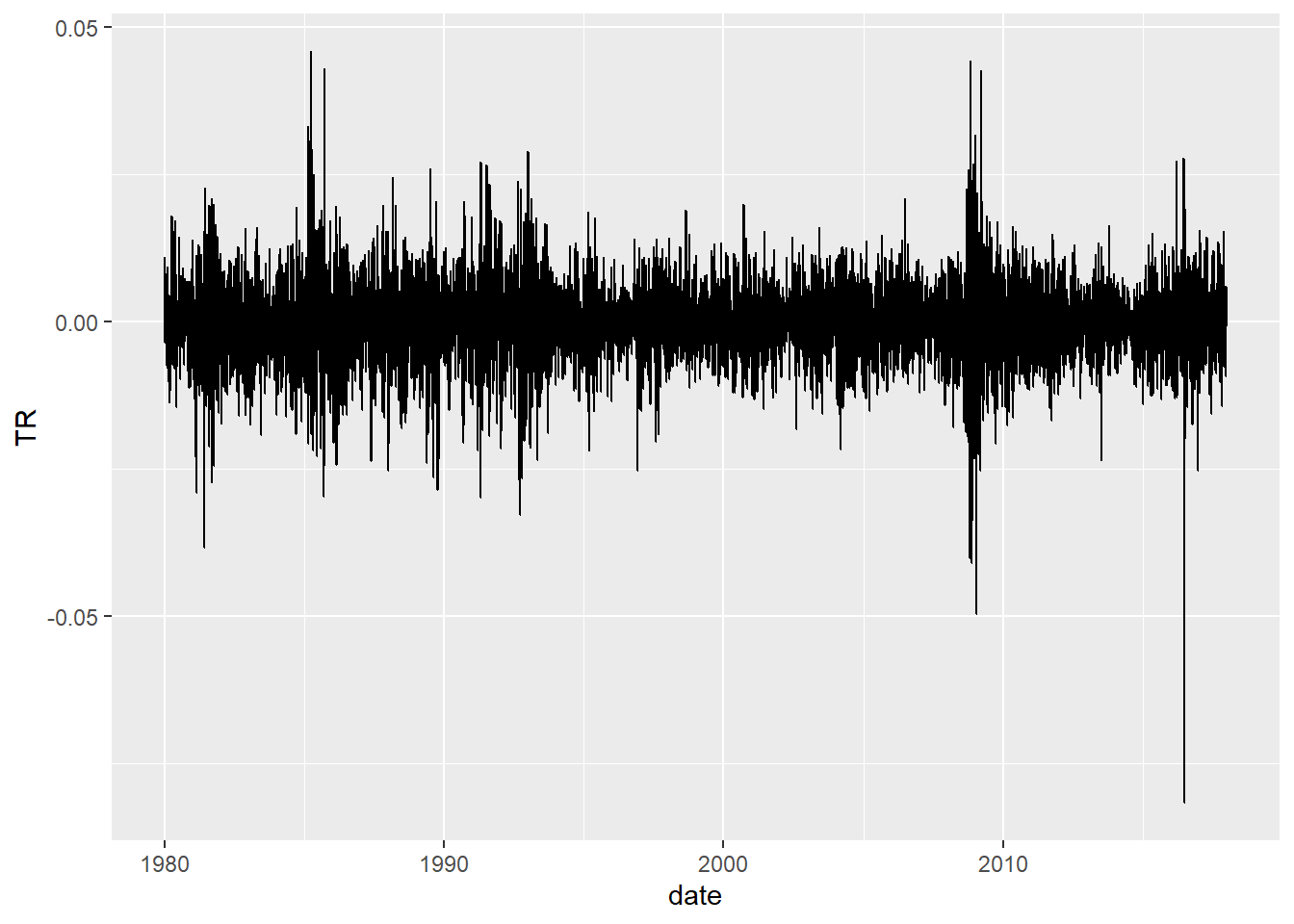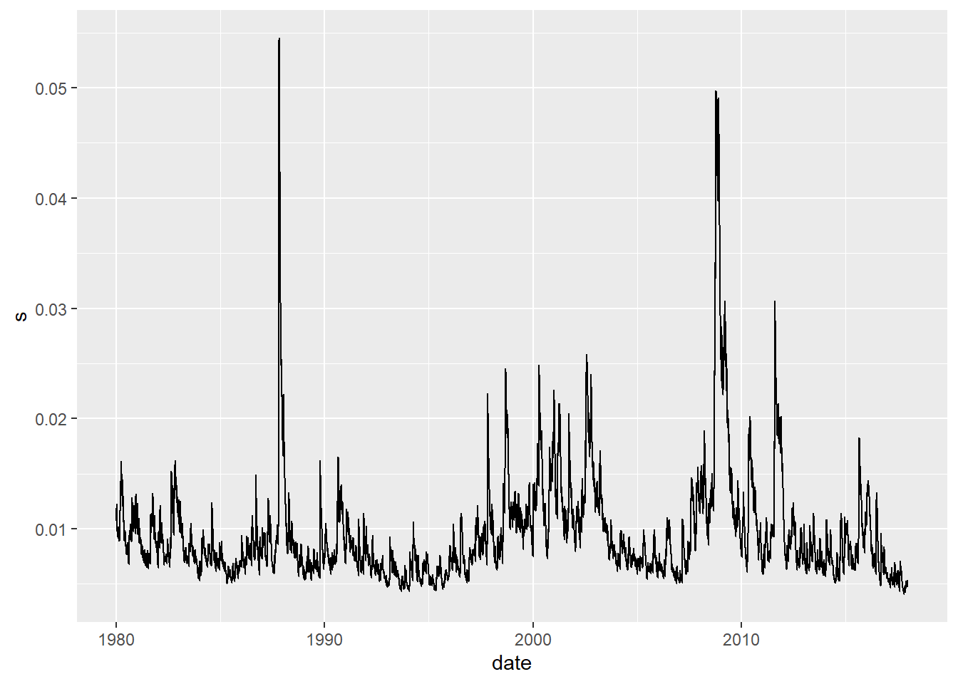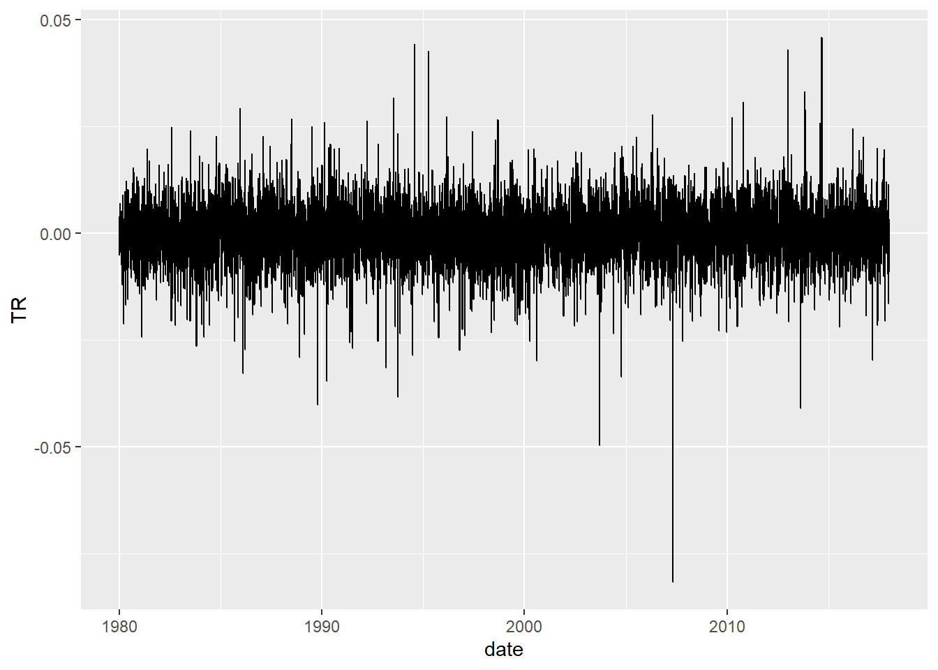 GARCH model has many extensions. We are going to focus on GARCH(1,1). It is one of the simplest GARCH model .But it does a very good job on WILSHIRE 5000 data in modelling volatility clustering.
