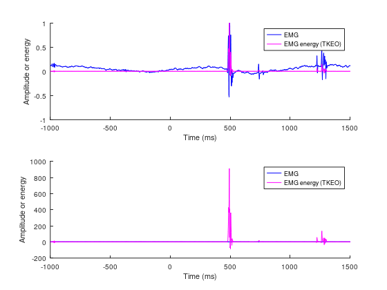 plot(emgtime, tkeo./max(tkeo), 'm', 'linewidth', 2)